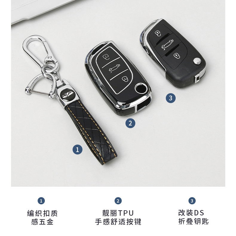 改装DS款钥匙套大师折叠C6 后配雪铁龙汽车钥匙包壳扣TPU高档男女
