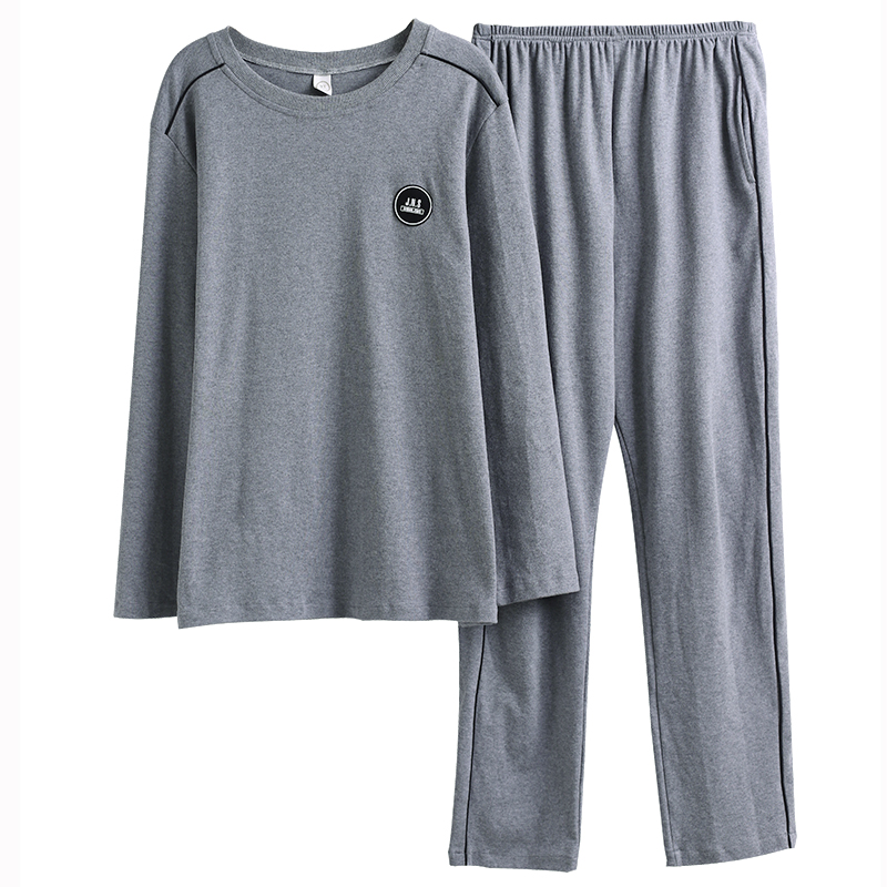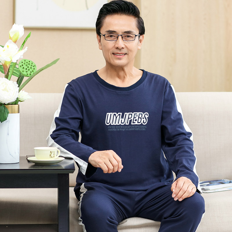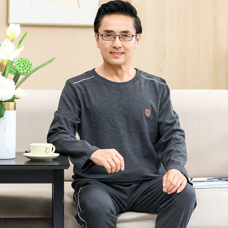 爸爸长袖纯棉睡衣套装中年男士休闲全棉套头加大码家居服套装春秋