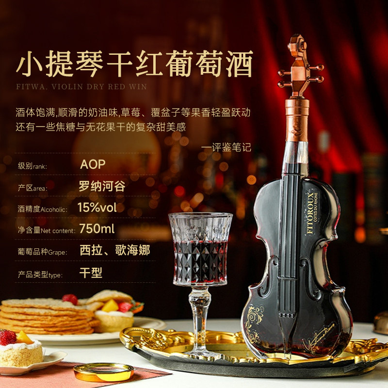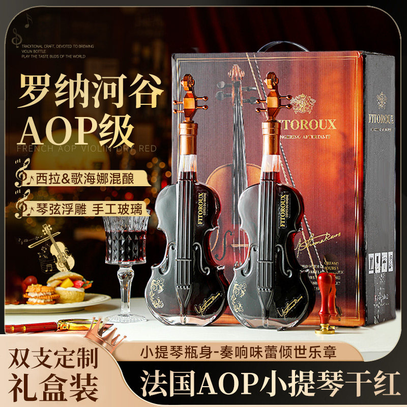 【自营】法国进口红酒15度AOP小提琴干红葡萄酒西拉正品2支礼盒装