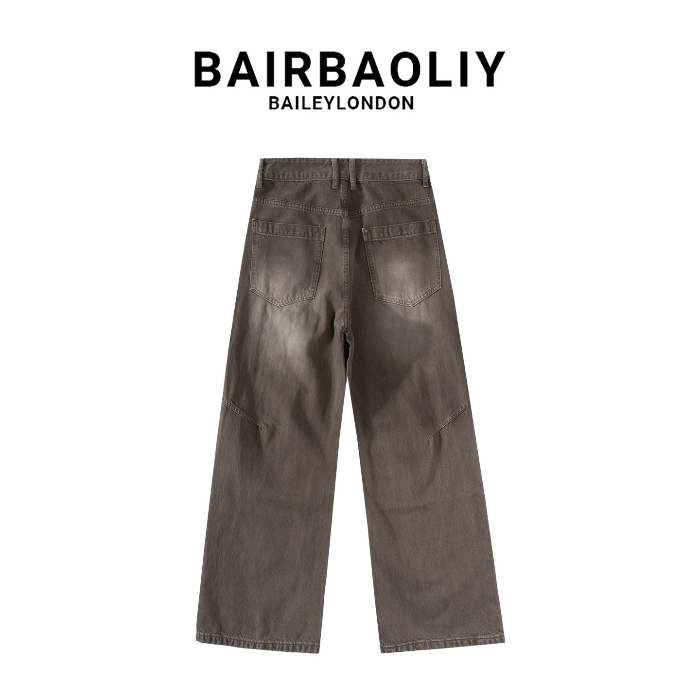 BAIRBAOLIY潮牌复古做旧纯棉弯刀裤男宽松直筒百搭时尚阔腿牛仔裤
