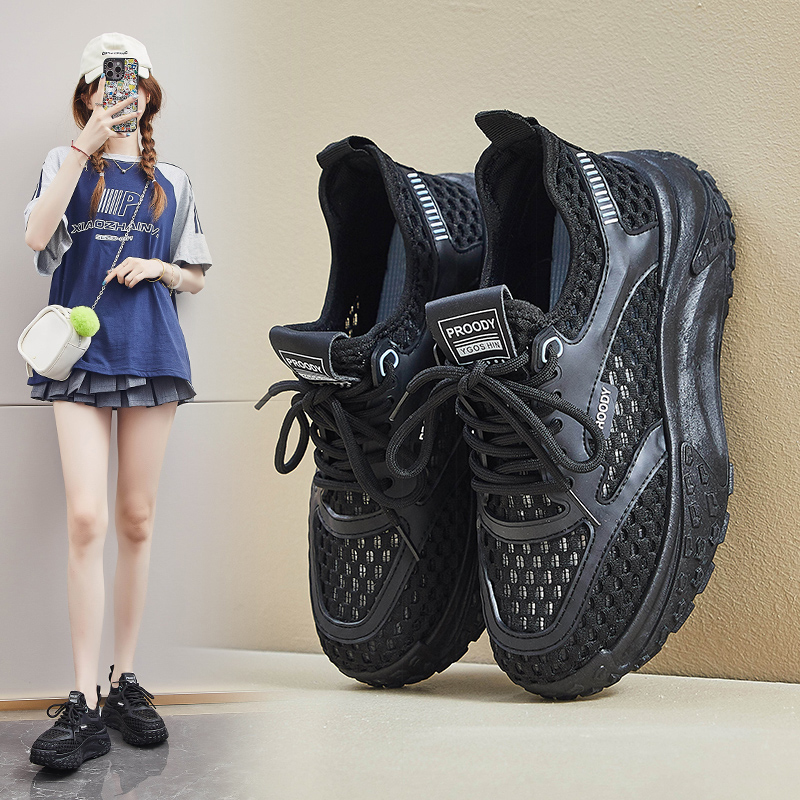 老爹鞋女2025新款夏季透气网面薄款网鞋轻便休闲百搭厚底运动鞋女