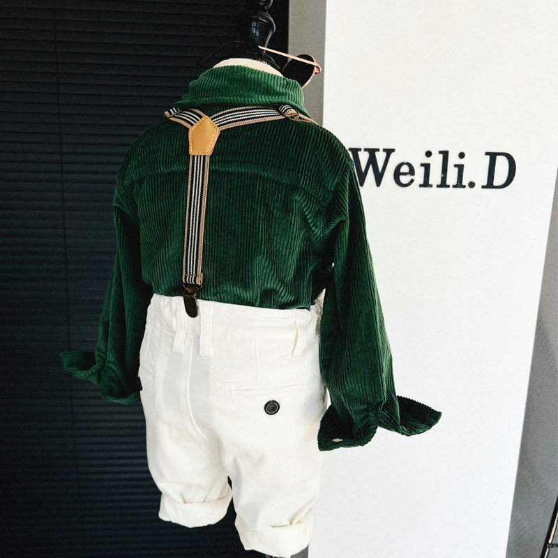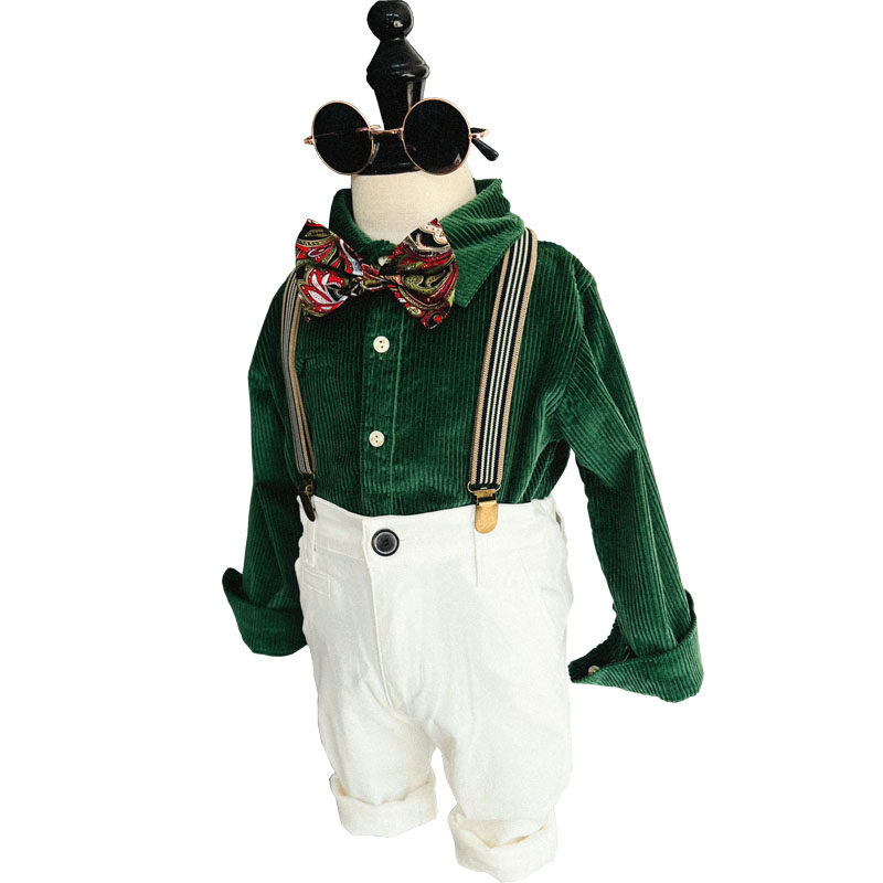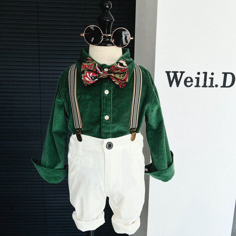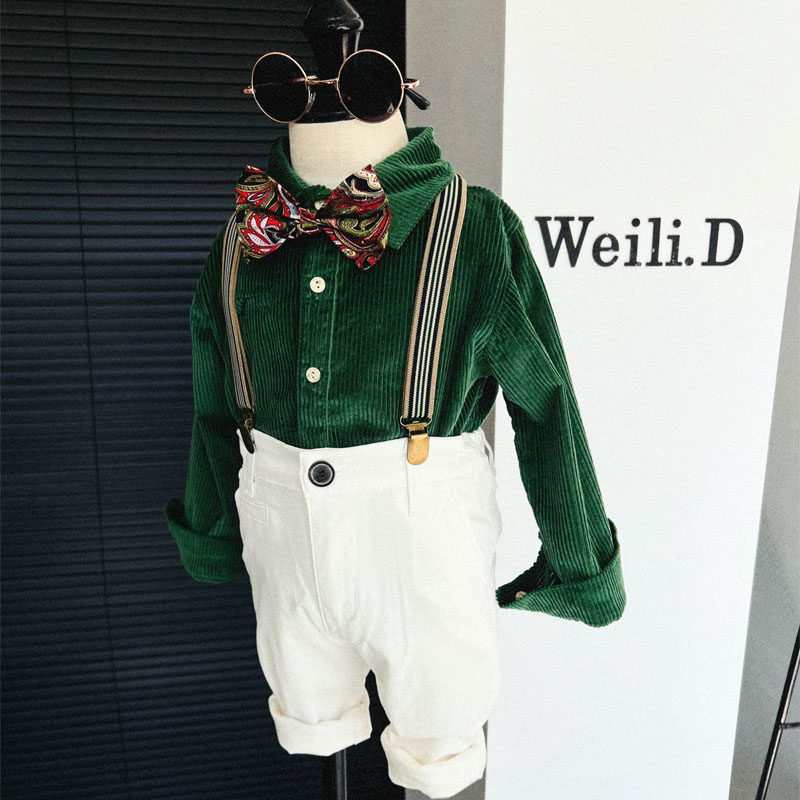 男童英伦风演出服 儿童春季新款走秀礼服复古摄影衬衫背带裤套装