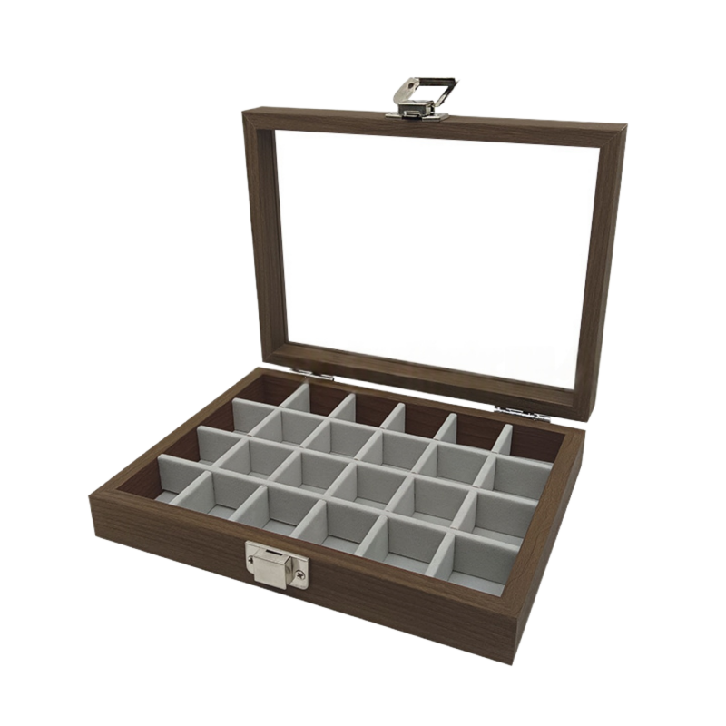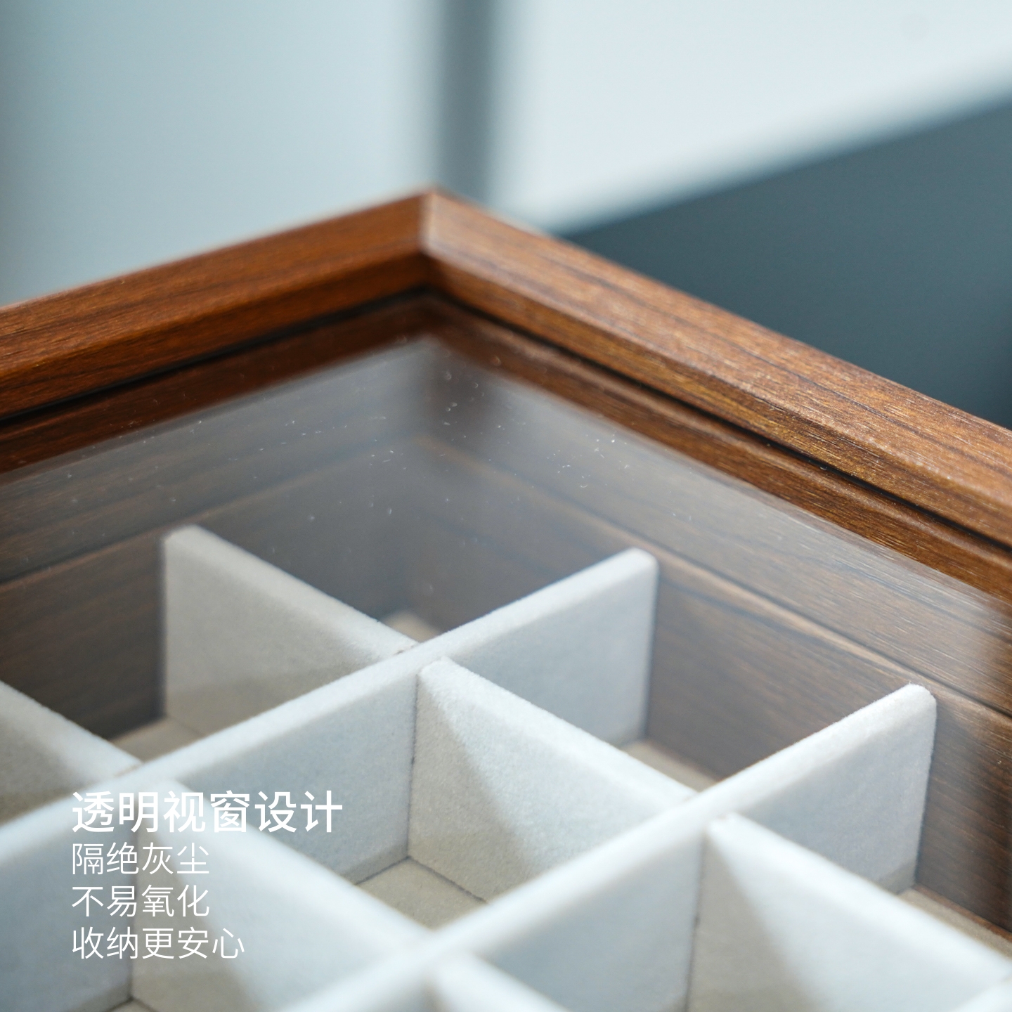 小号黑胡桃木纹防尘带盖24格珠宝箱胸针发卡手链饰品盒首饰收纳盒