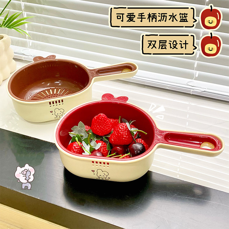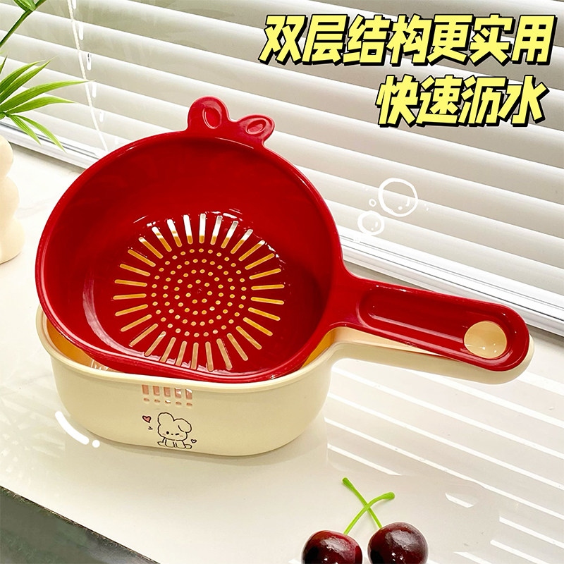 精致双层洗水果神器沥水篮厨房家用新款客厅小果盘果篮淋水篮