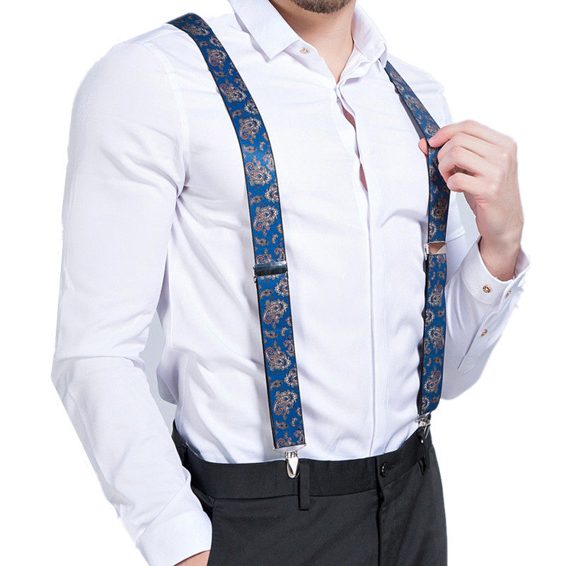 男士背带夹成人裤子背带男式夹吊带黑色四夹松紧防滑吊裤带扣装饰