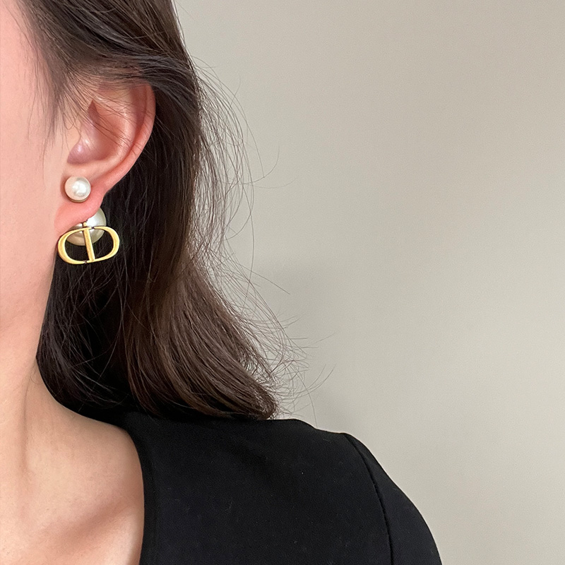 奥米迪奥CD字母珍珠耳钉气质简约复古经典高级感耳环明星同款耳饰