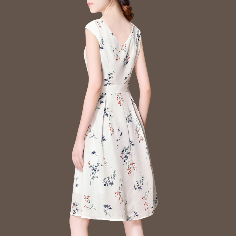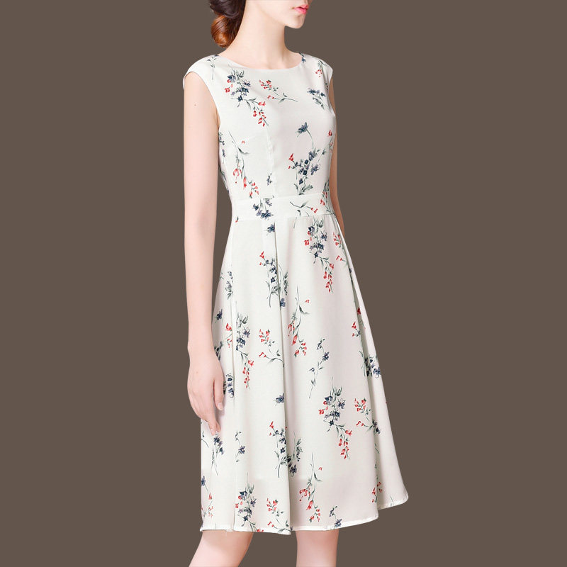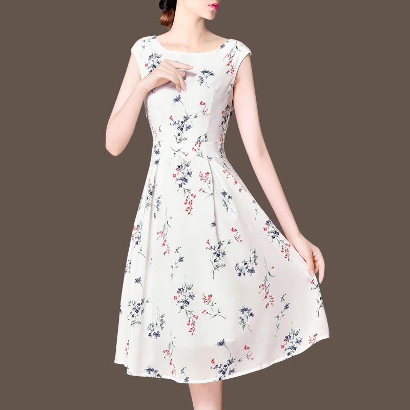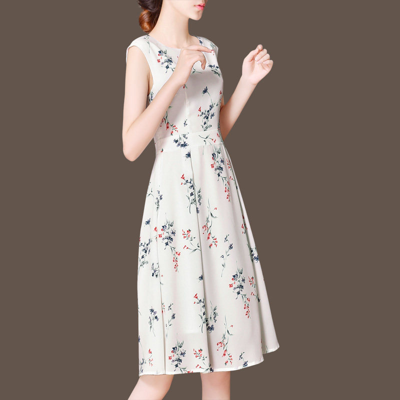夏装新款裙子2025女装气质短袖修身显瘦夏季中长款大摆印花连衣裙
