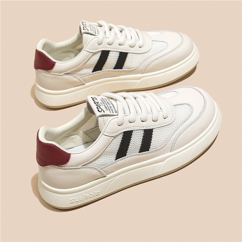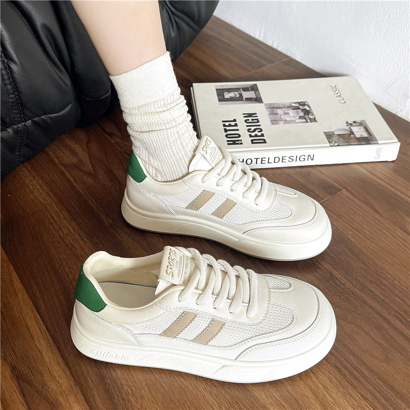 德训小白鞋女百搭网面透气平厚底2025春夏季薄新款爆休闲运动板鞋