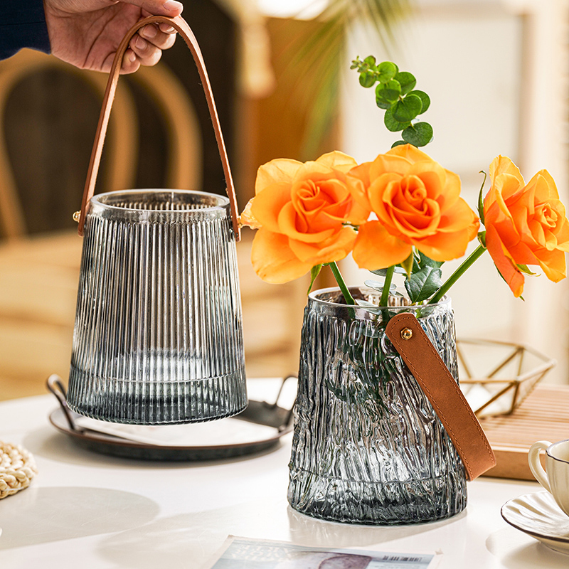 北欧简约创意手提玻璃花瓶透明水培鲜花百合插花客厅餐桌装饰摆件