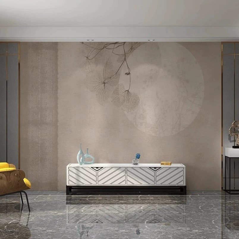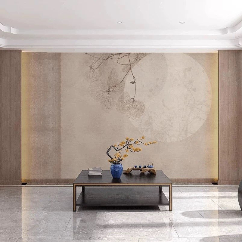 中式客厅沙发电视背景墙布禅意复古风银杏叶卧室茶室壁布床头壁画
