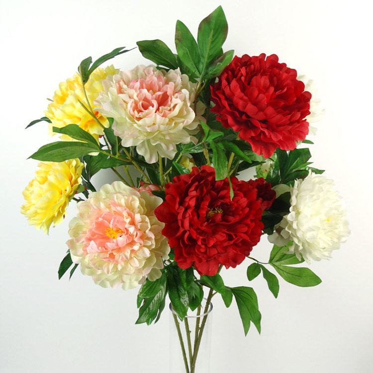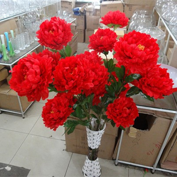 仿真5头8头富贵大牡丹花假花干花婚庆装饰花绢花客厅婚房落地摆件