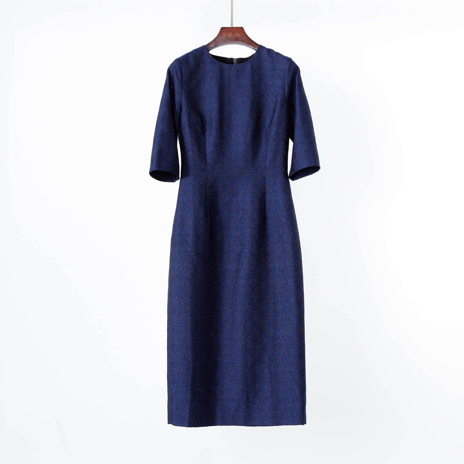 华丽质感 上久楷立体提花真丝羊毛+桑蚕丝内衬气质修身连衣裙