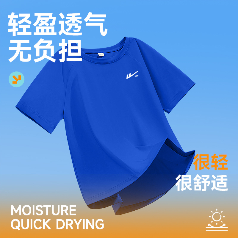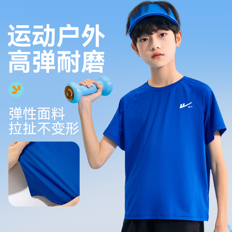 回力童装男童短袖t恤2025新款儿童蓝色速干衣中大童凉感半袖体恤