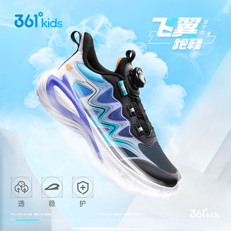 飞翼1.0|361度童鞋男女童运动跑鞋夏季透气网面旋钮扣中大童鞋子