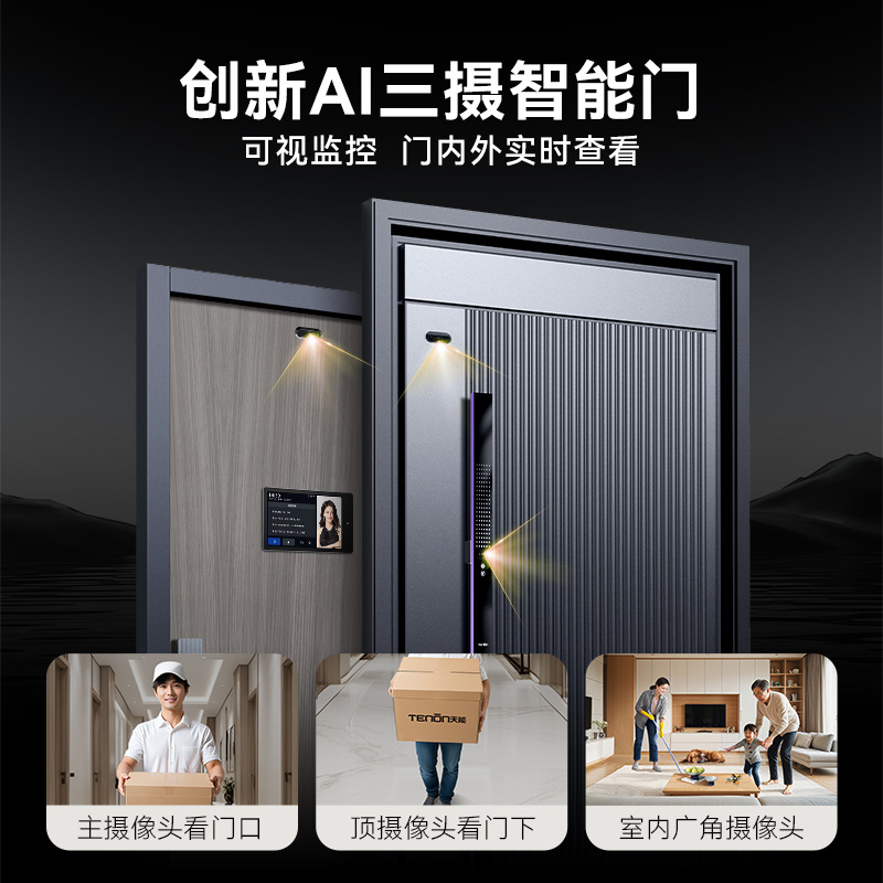 亚太天能精雕铸铝装甲智能门三摄防盗入户门家用进户门大门M8max