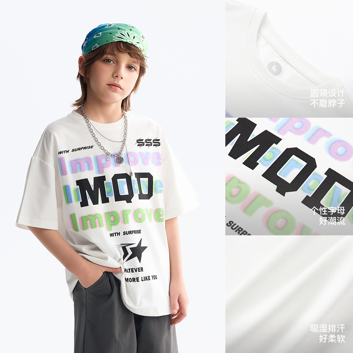 【吸湿速干】MQD童装儿童圆领t恤25夏季新款男童短袖字母打底衫