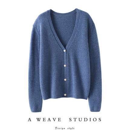 被美到了版型是重点~大V领羊绒开衫女纯羊绒毛衣针织开衫外套秋冬
