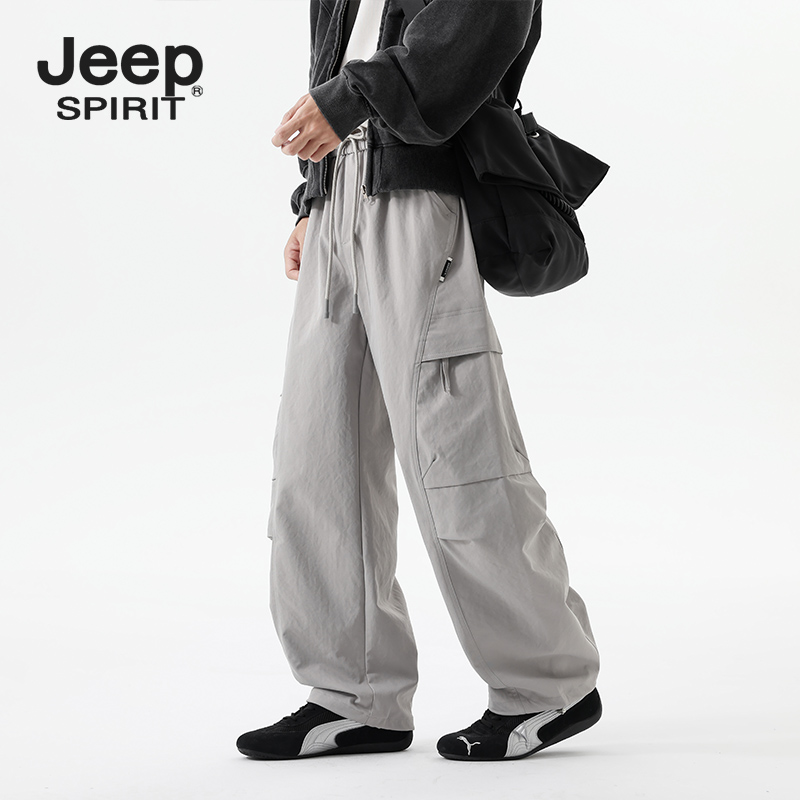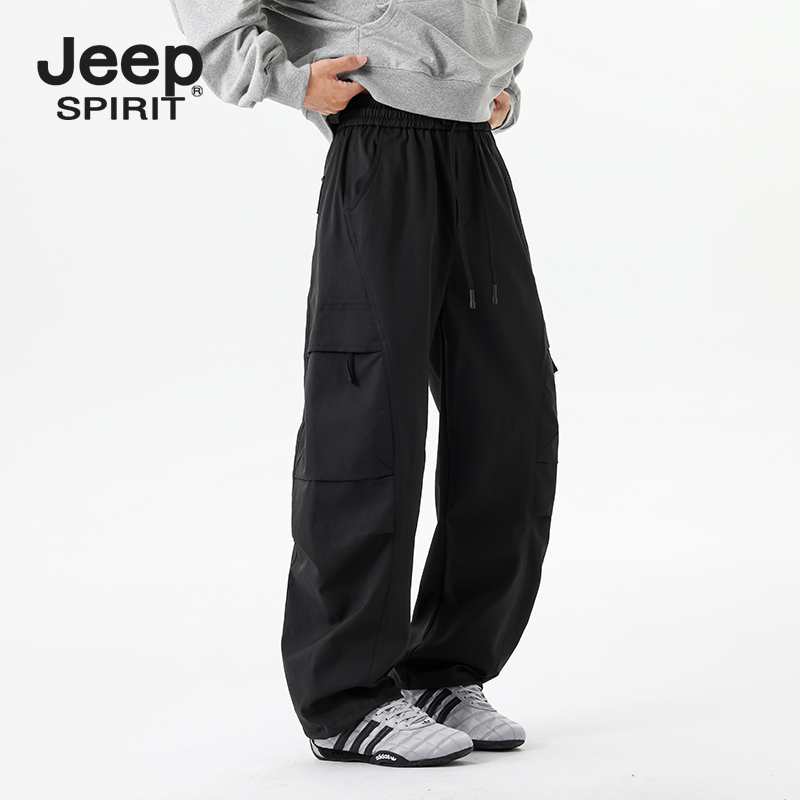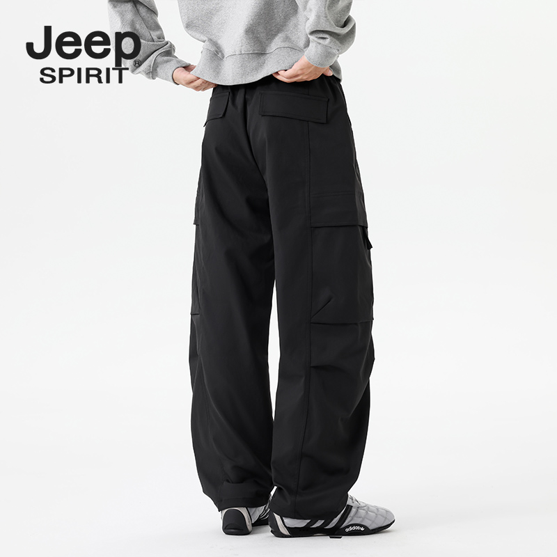 JEEP吉普美式复古弯刀裤子工装裤男宽松直筒2025秋冬休闲阔腿长裤