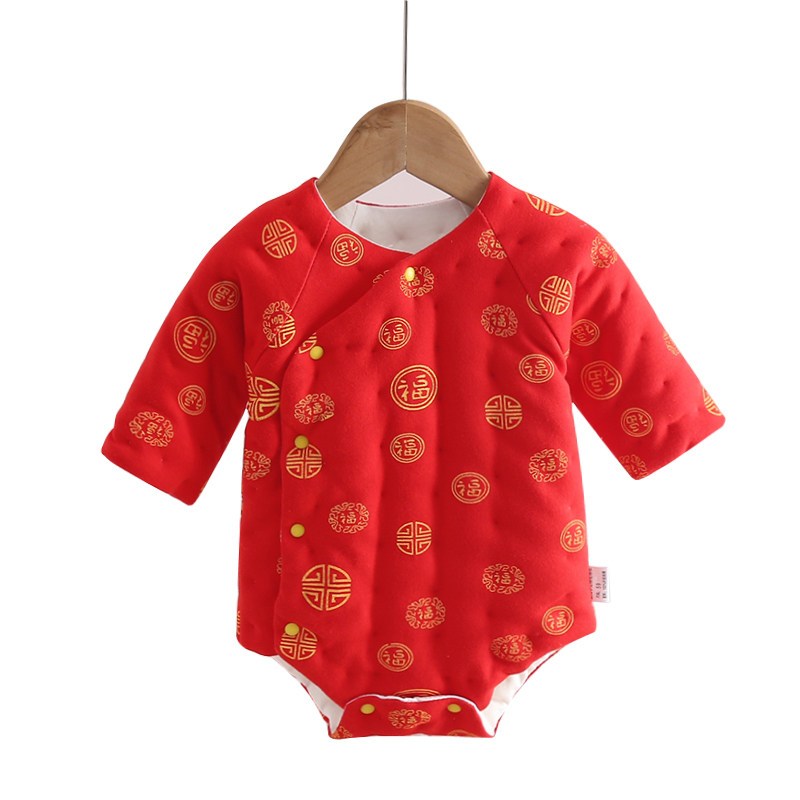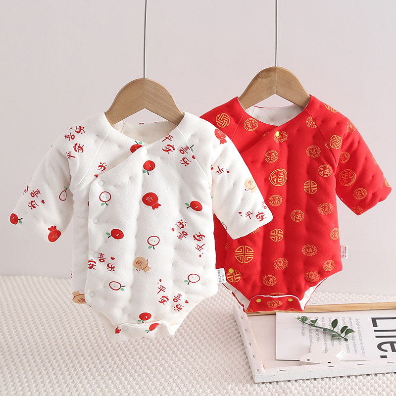 包屁衣婴儿秋冬加厚男女宝宝手工棉花长袖三角哈衣新生儿连体睡衣