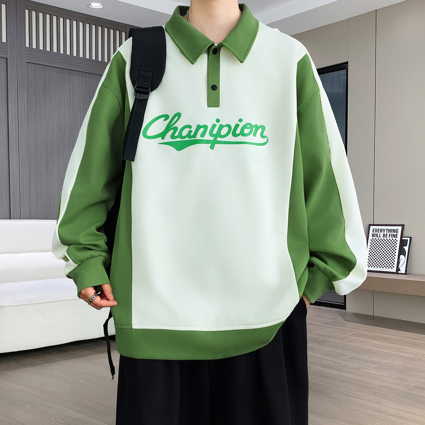 不起球不褪色翻领卫衣长袖打底衫