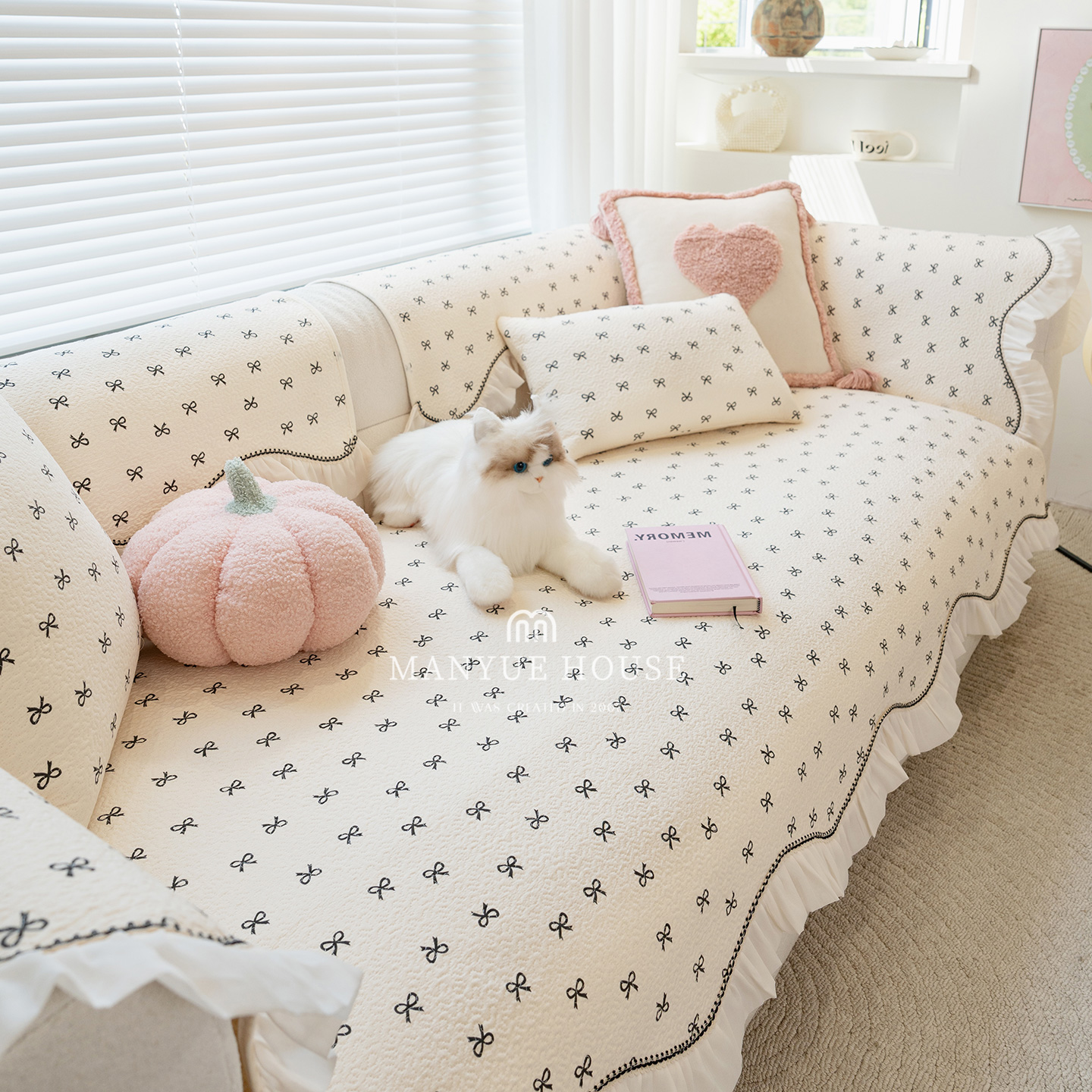 蔓越家 奶油风异形全棉沙发垫套罩四季通用纯棉防滑坐垫子盖布巾