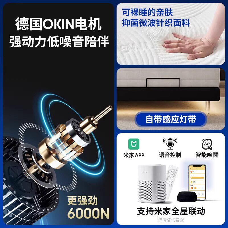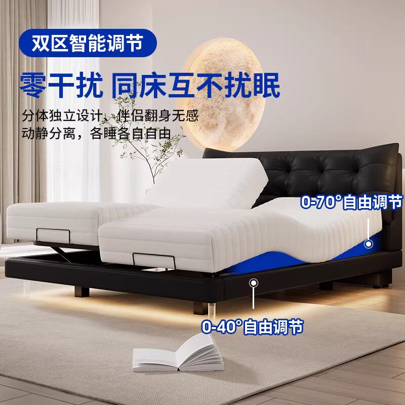 现代简约大黑熊智能电动床自动按摩多功能分区互不打扰双人悬浮床