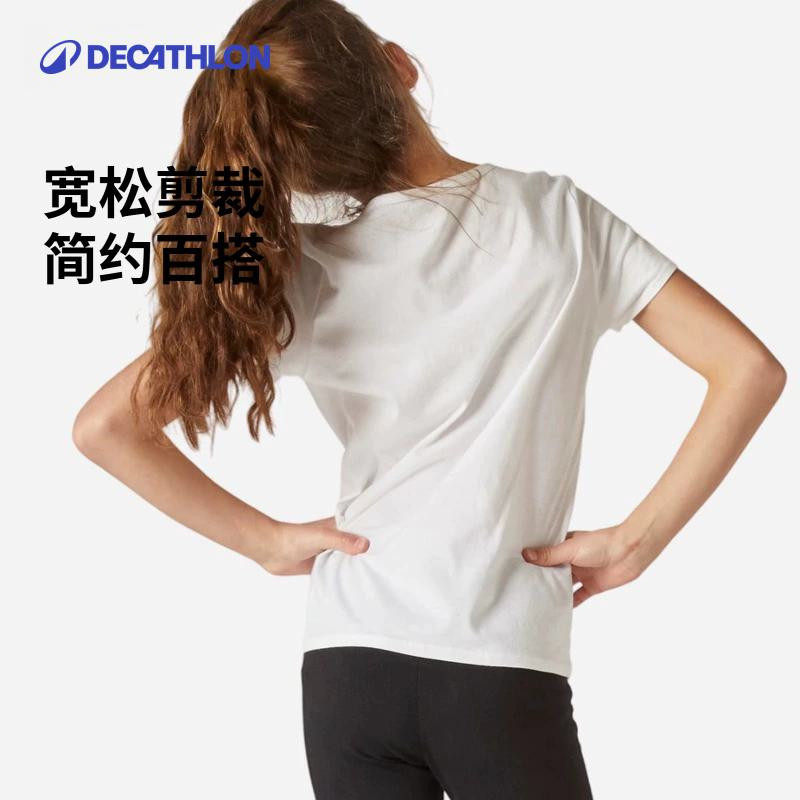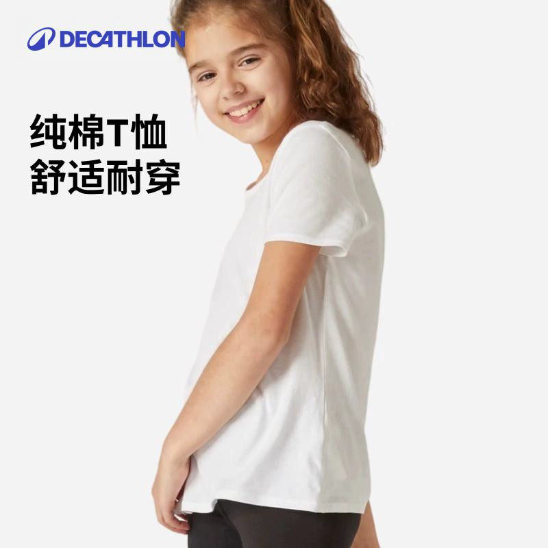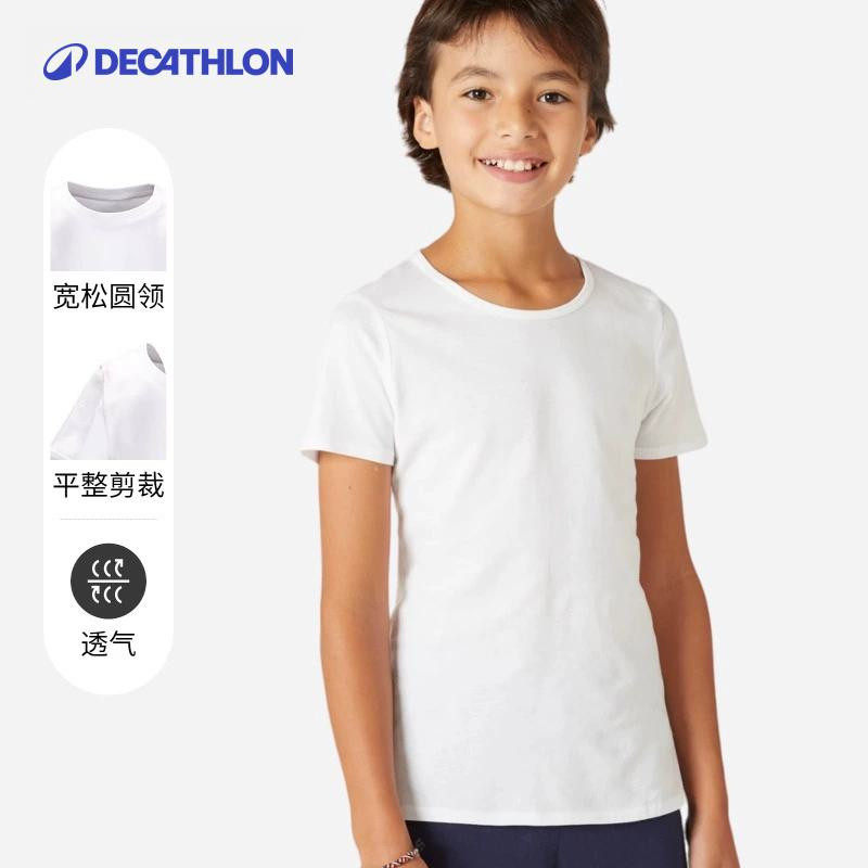 迪卡侬短袖T恤儿童运动打底童装男女童体育宝宝白色纯棉上衣KIDC