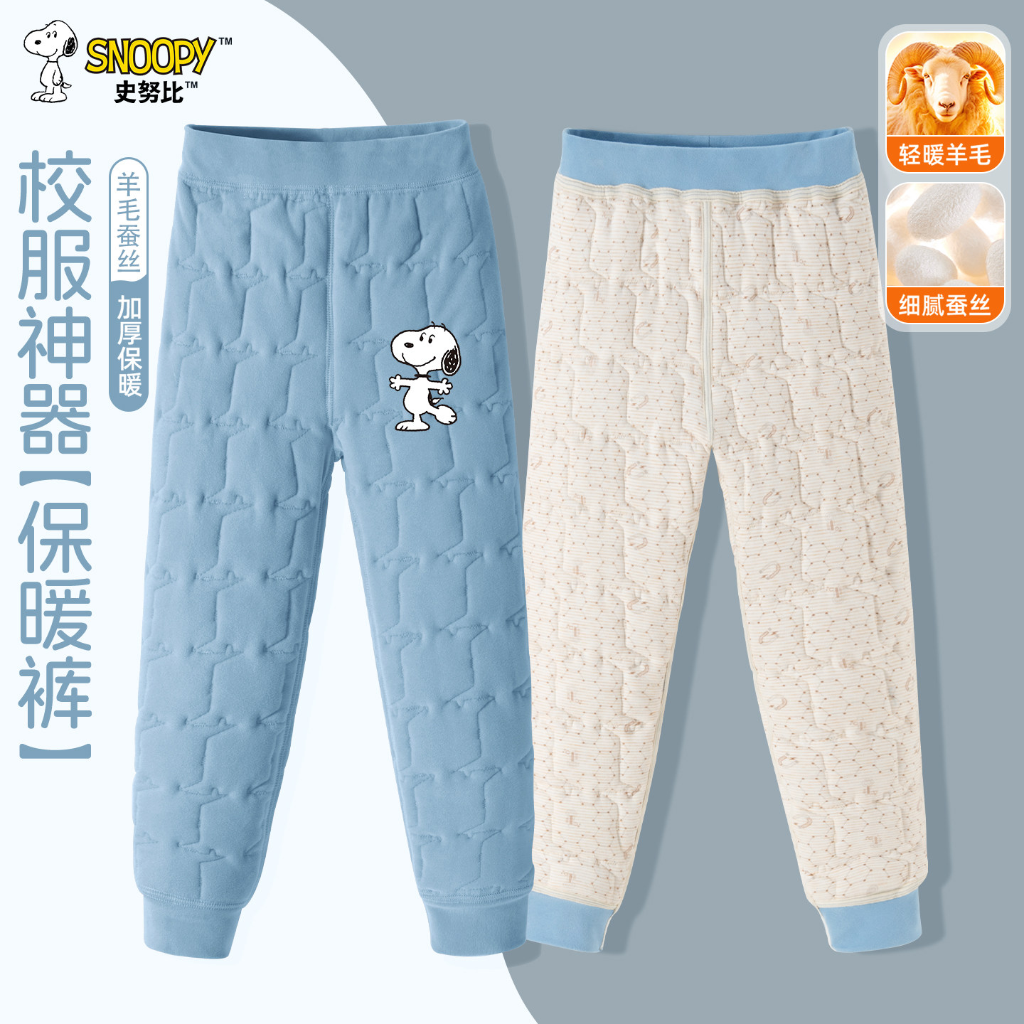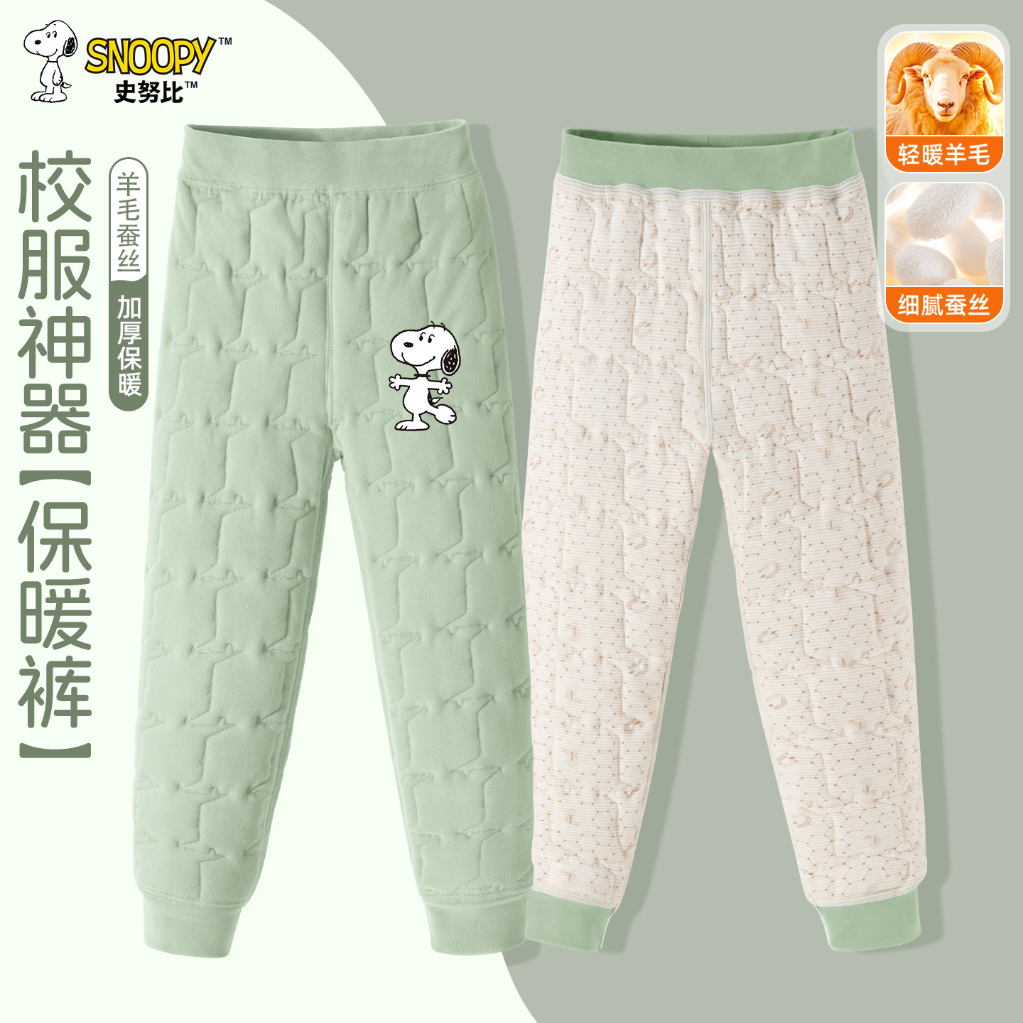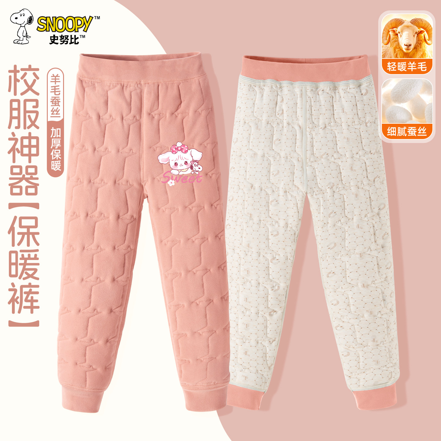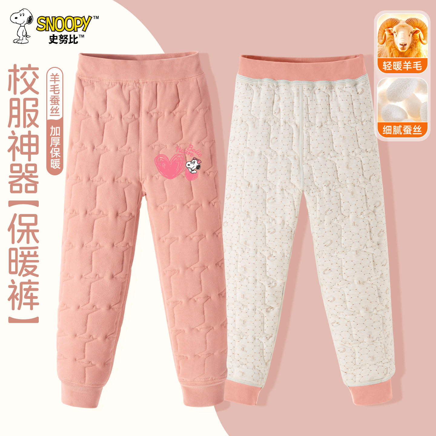 史努比女童校服神器加绒加厚保暖裤冬季男女童防寒羊毛蚕丝束脚裤