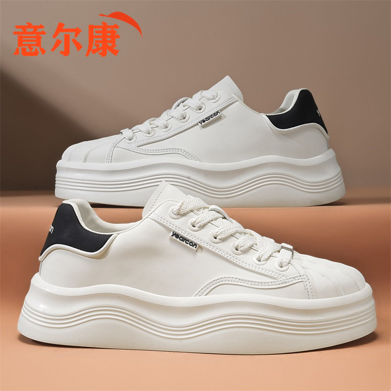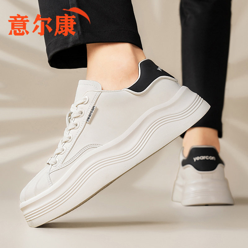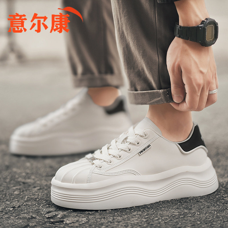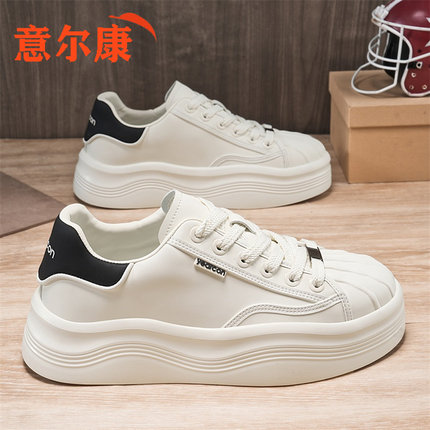 意尔康男鞋2025新款春季厚底真皮小白鞋增高运动百搭休闲白色板鞋