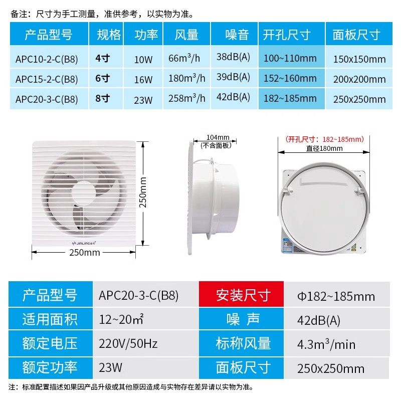 金羚排气扇8寸换气扇墙壁式家用强力抽风机排风扇卫生间窗式静音