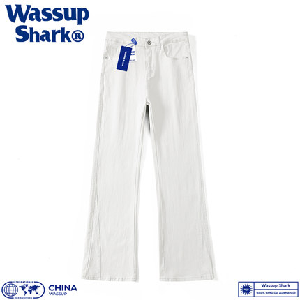 Wassup Shark美式高街黄泥牛仔裤男潮牌微喇复古水洗休闲裤子白色