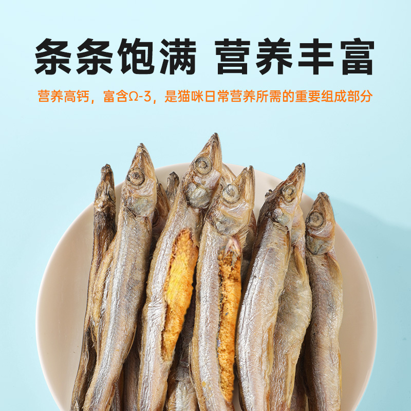 小鱼干多春鱼冻干猫零食猫条多春鱼满籽新鲜营成猫幼猫粮猫咪零食