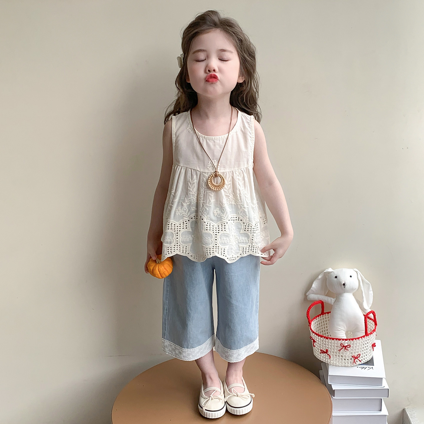 女童套装夏装女宝宝2025新款娃娃衫牛仔裤两件套儿童韩版洋气衣服