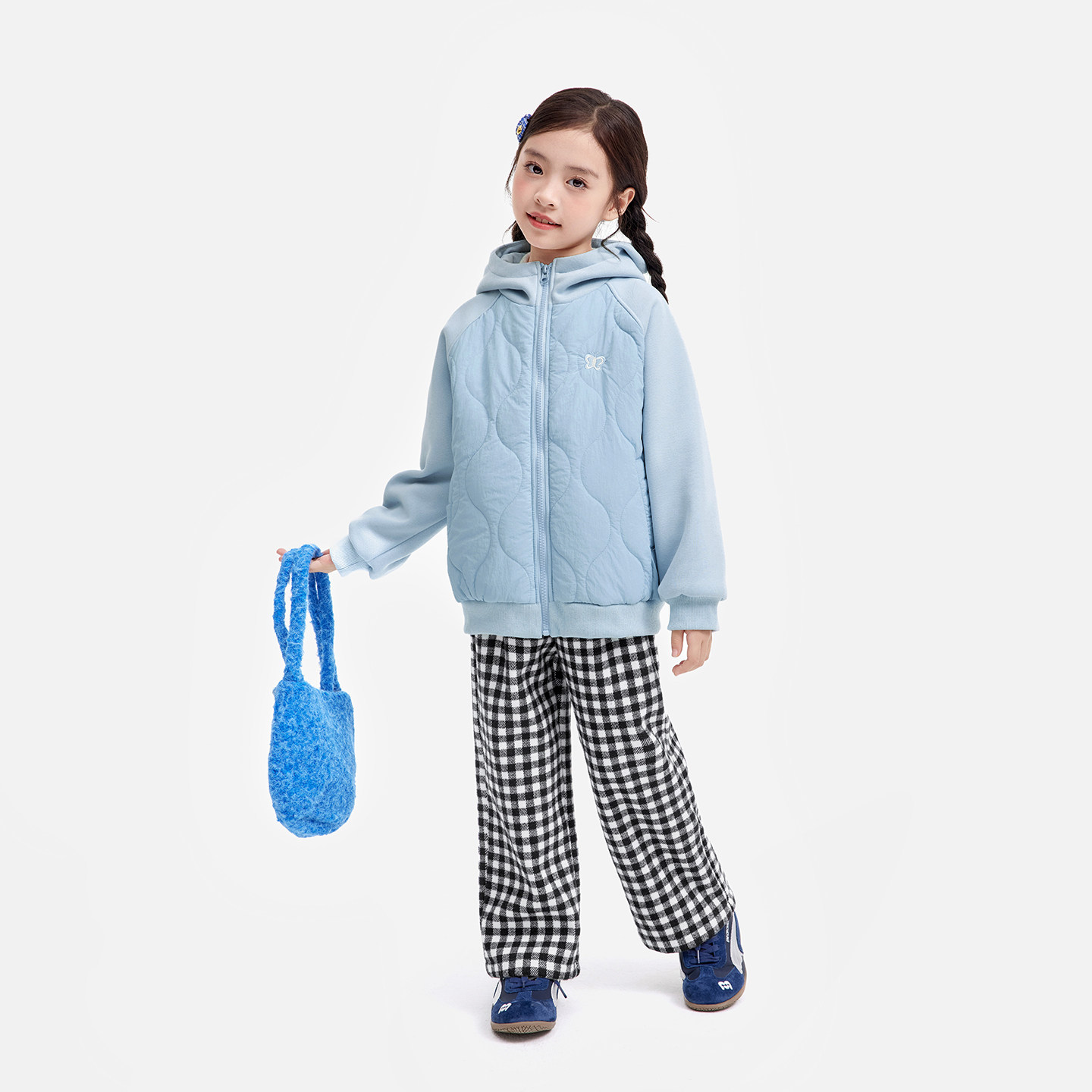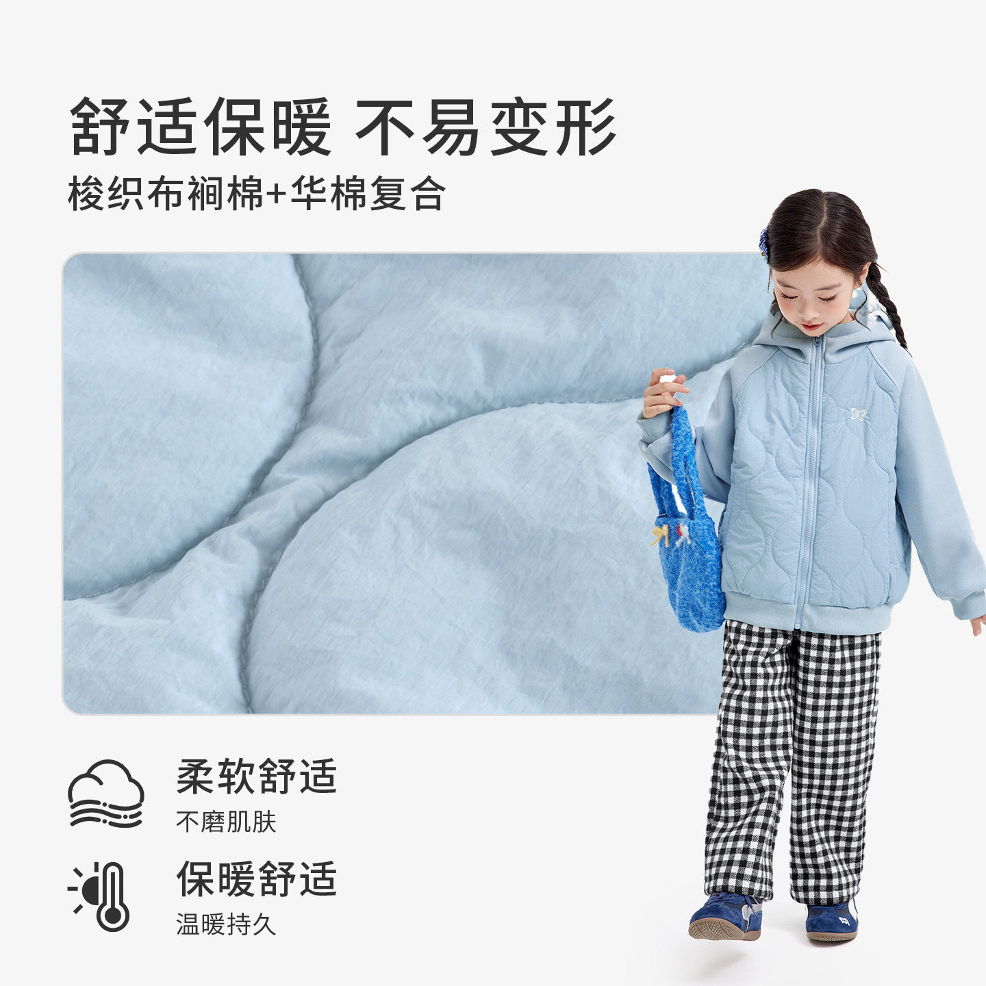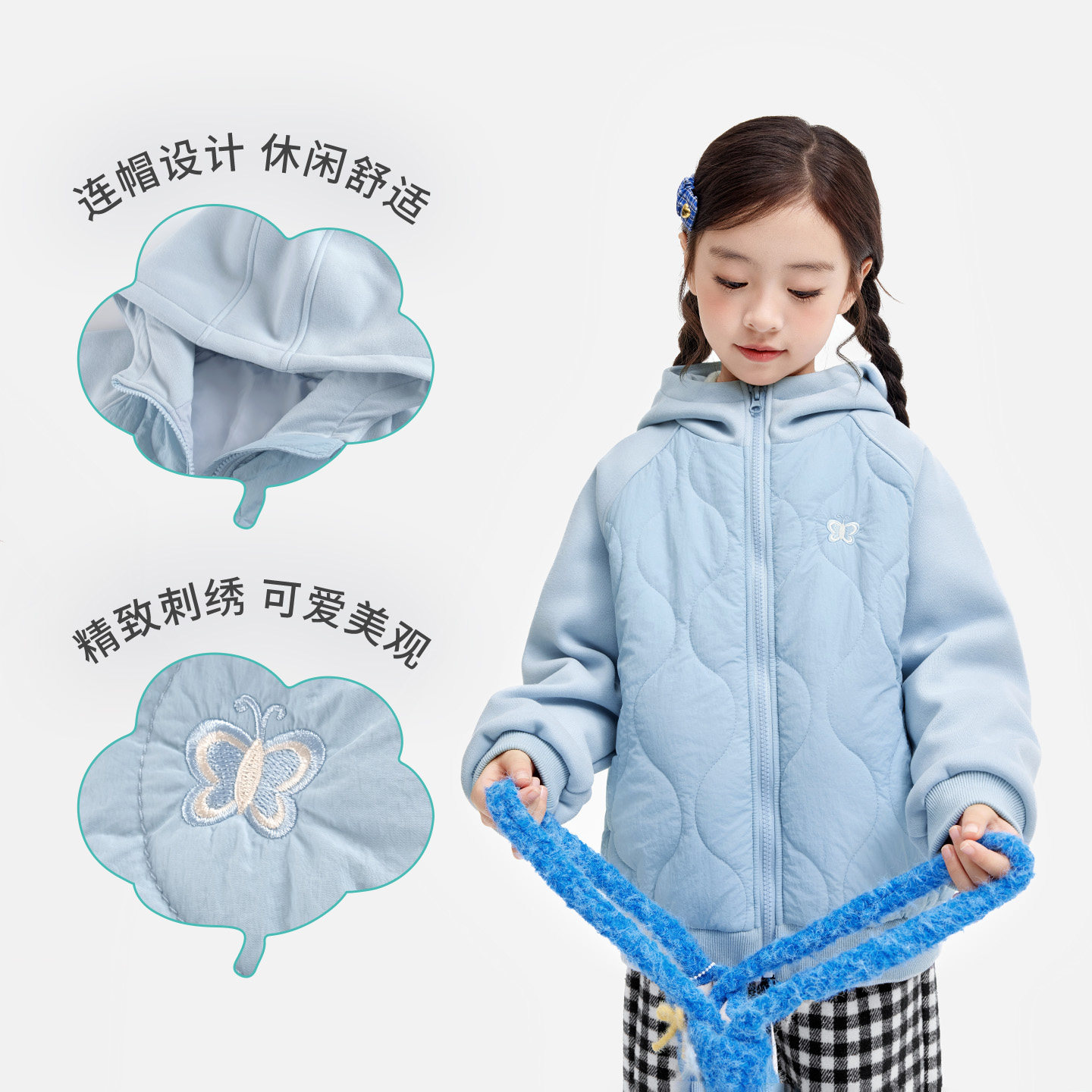 小茵曼童装女童夹棉连帽外套精致刺绣25冬新款中大童加厚保暖上衣