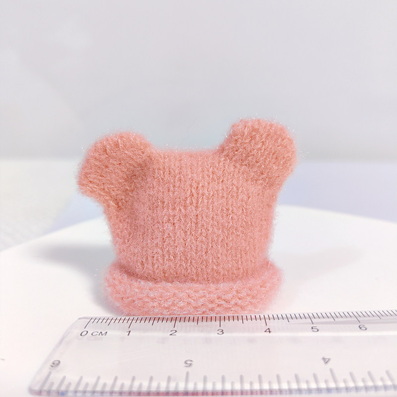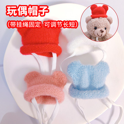 玩偶公仔头戴自嘲熊头套13cm帽子娃帽针织帽棉花娃娃毛线帽子