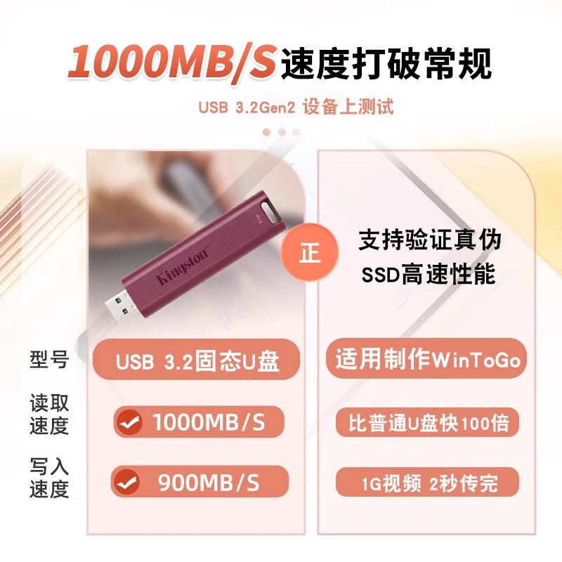 金士顿固态u盘512g大容量1t高速3.2ssd移动硬闪存读高达1000M优盘