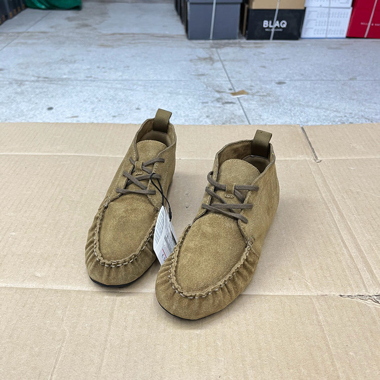 外贸原单女鞋真皮新款时尚圆头纯色平底带褶皱感系带单鞋豆豆鞋