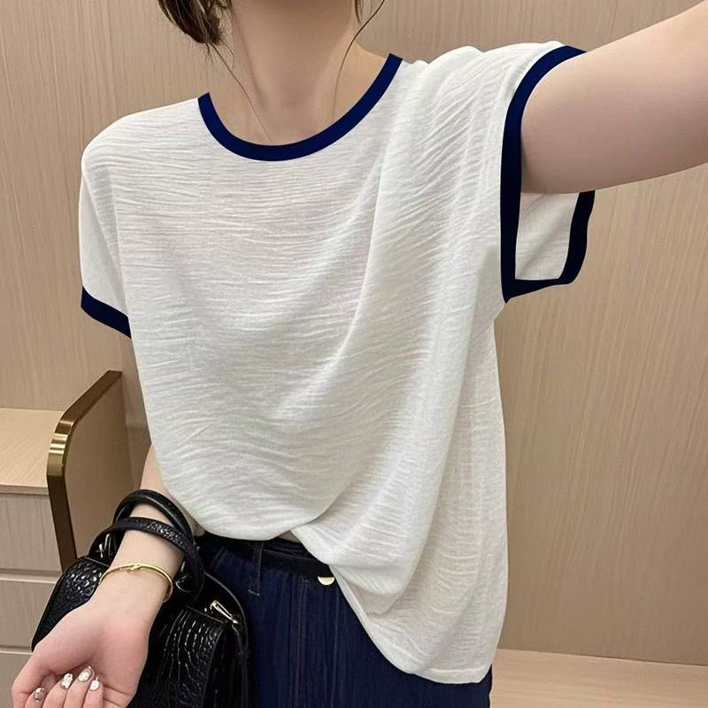 肌理感短袖t恤女2025新款宽松慵懒风胖mm显瘦大码女装白色上衣夏