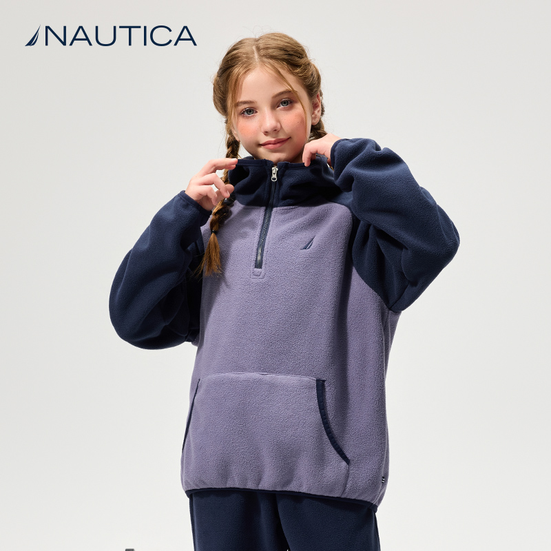 【自发热】NAUTICA童装 男童女童连帽卫衣春秋季儿童摇粒绒抓绒衣