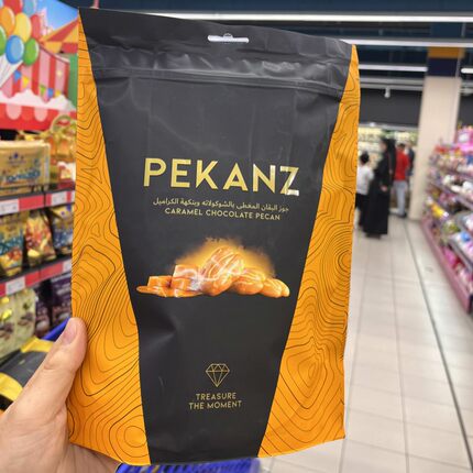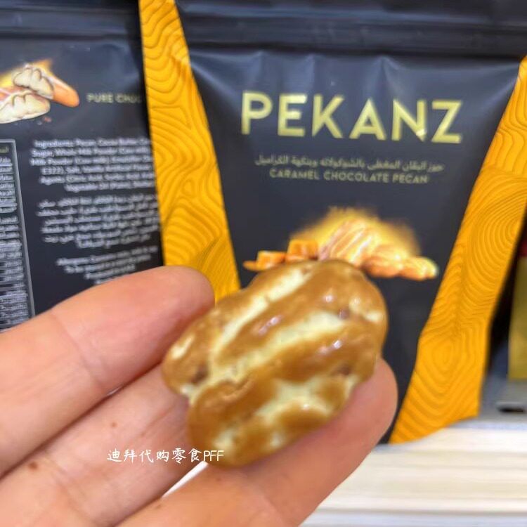 现货 迪拜代购PEKANZ牛奶黑白焦糖巧克力碧根果50G袋装旅游伴手礼