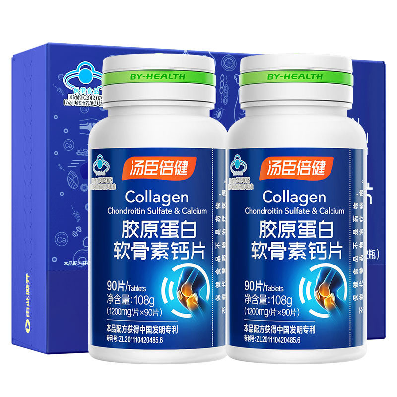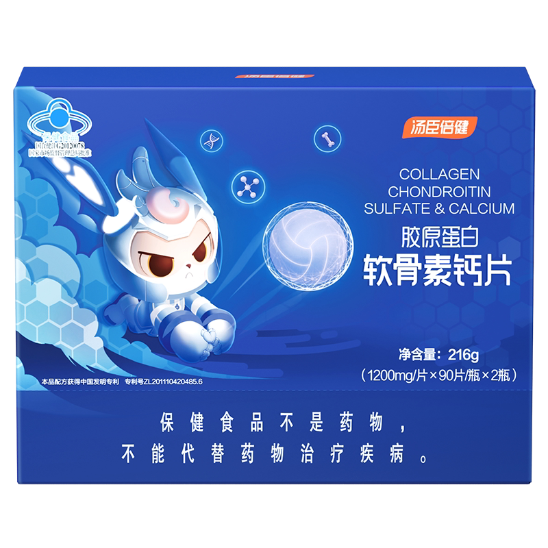 汤臣倍健胶原蛋白软骨素钙片正品中老年人腿抽筋腰腿疼增加骨密度