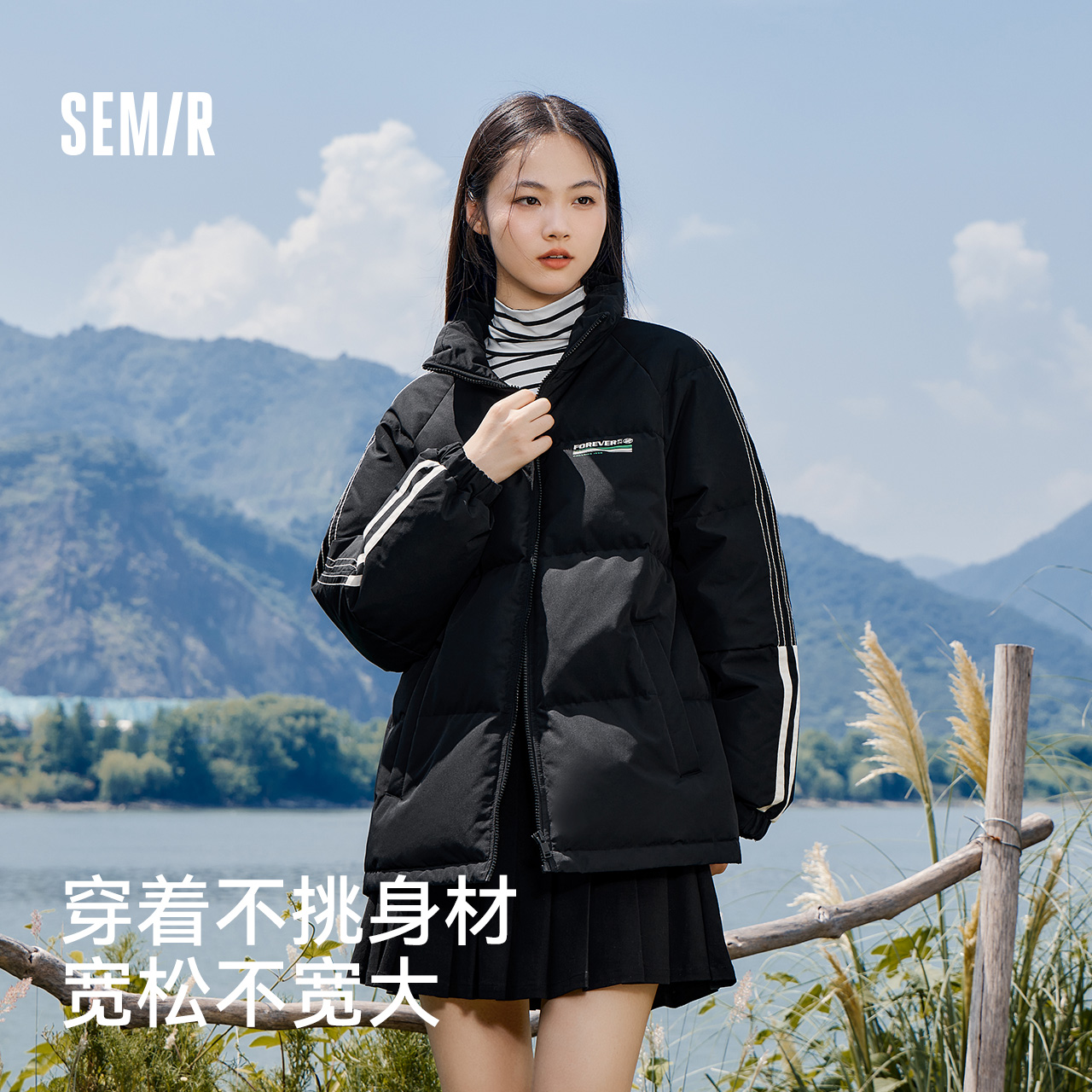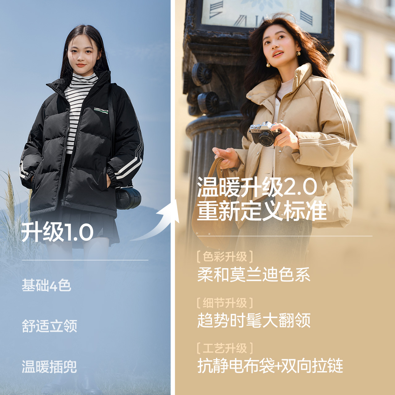 森马三防羽绒服女2024冬季新款学院风防风防水防污外套立领面包服