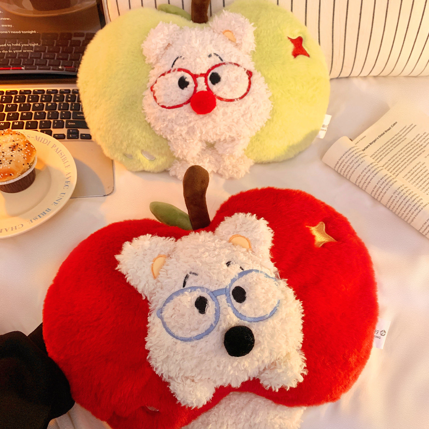 可爱苹果小狗热水袋充电款暖水袋防爆毛绒暖手暖宝宝热敷2025新款