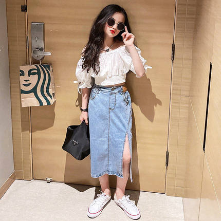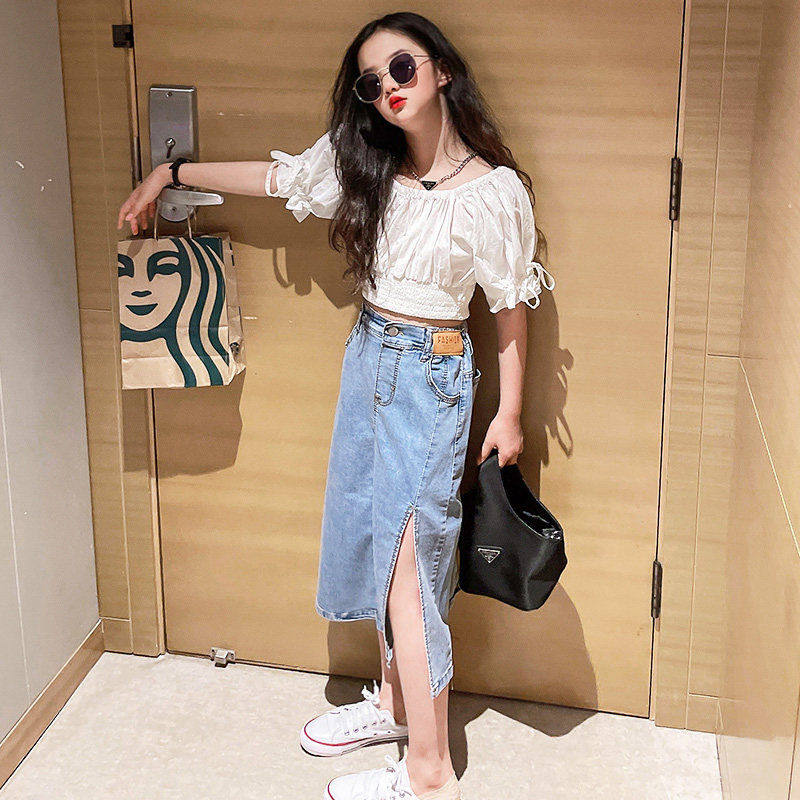 女童牛仔套装夏季2025新款洋气儿童女孩网红套裙中大童时髦两件套