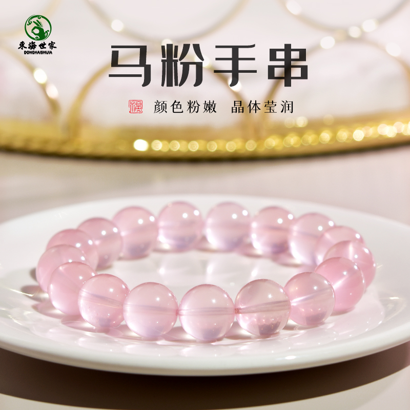 粉水晶手串女东海水晶玛瑙玉髓玉石马达加斯加马粉散珠子粉晶手链