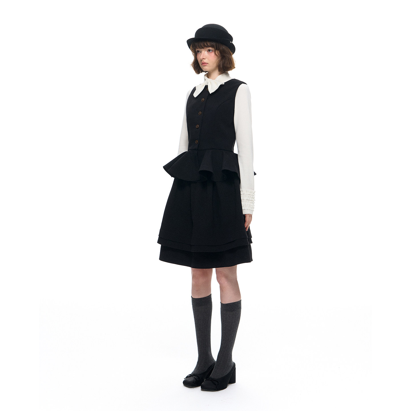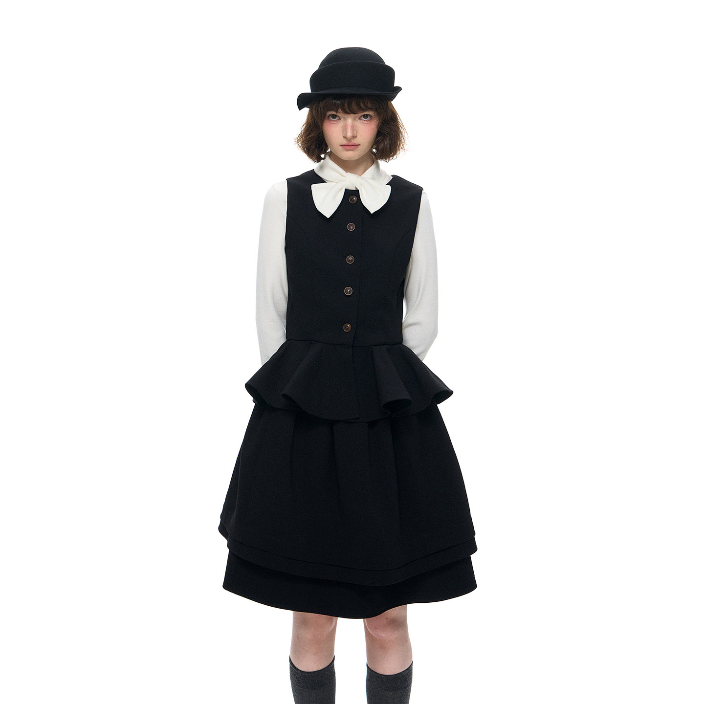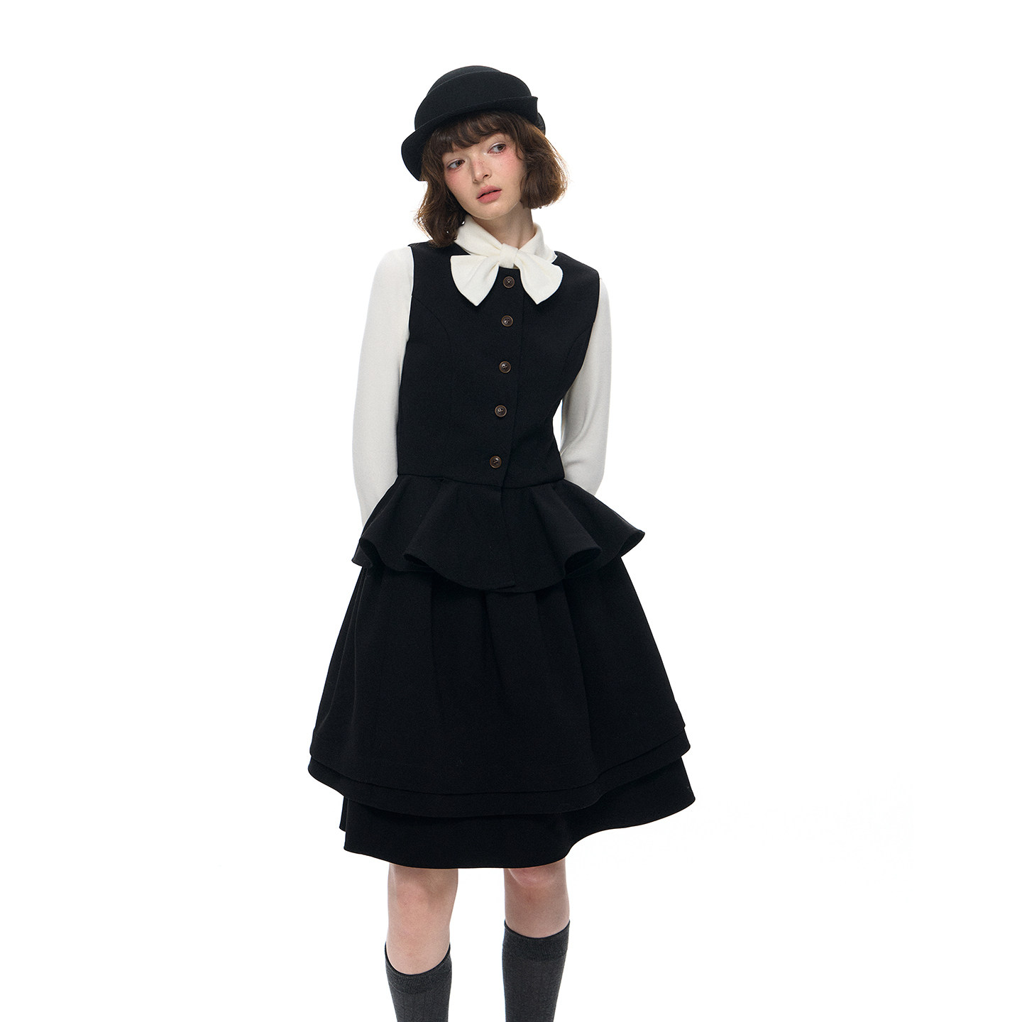 Romance Nanci 复古英伦千金感黑色收腰显瘦气质背心蓬蓬裙套装