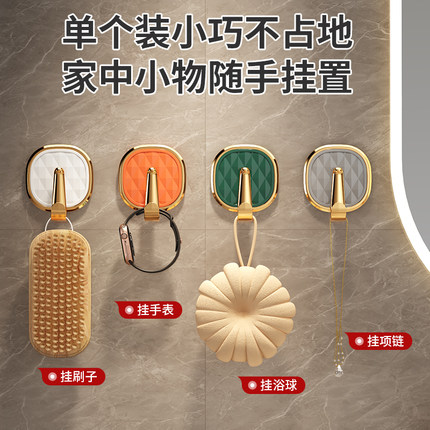 轻奢卫生间毛巾挂钩强力承重黏胶免打孔贴墙无痕墙壁门后厨房粘钩