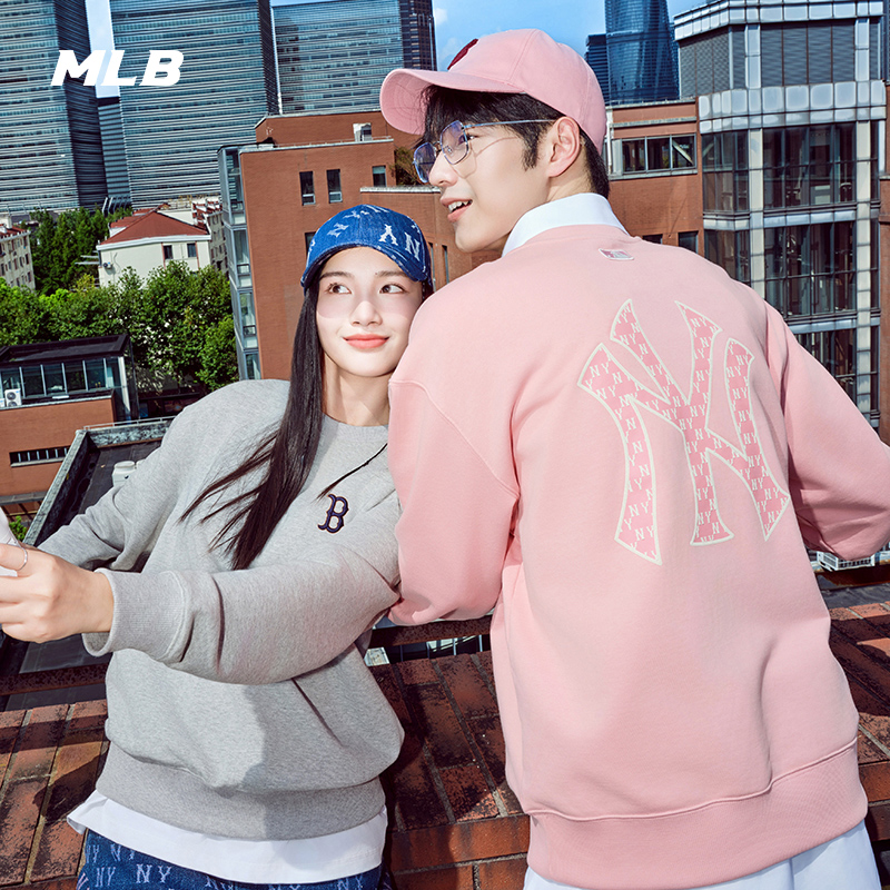 MLB官方男女情侣背标老花大logo圆领复古运动卫衣春夏MTM04