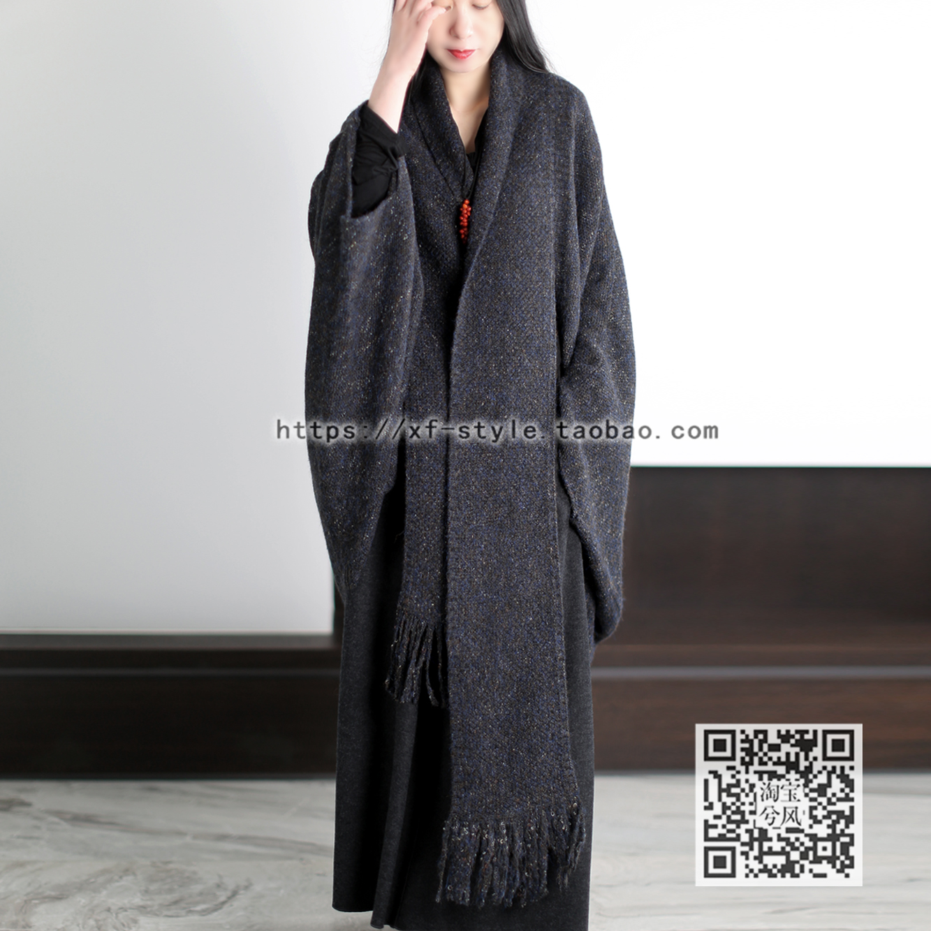 兮风小众设计感蝙蝠型不规则羊毛衫26秋冬多穿法围脖落肩款外套女