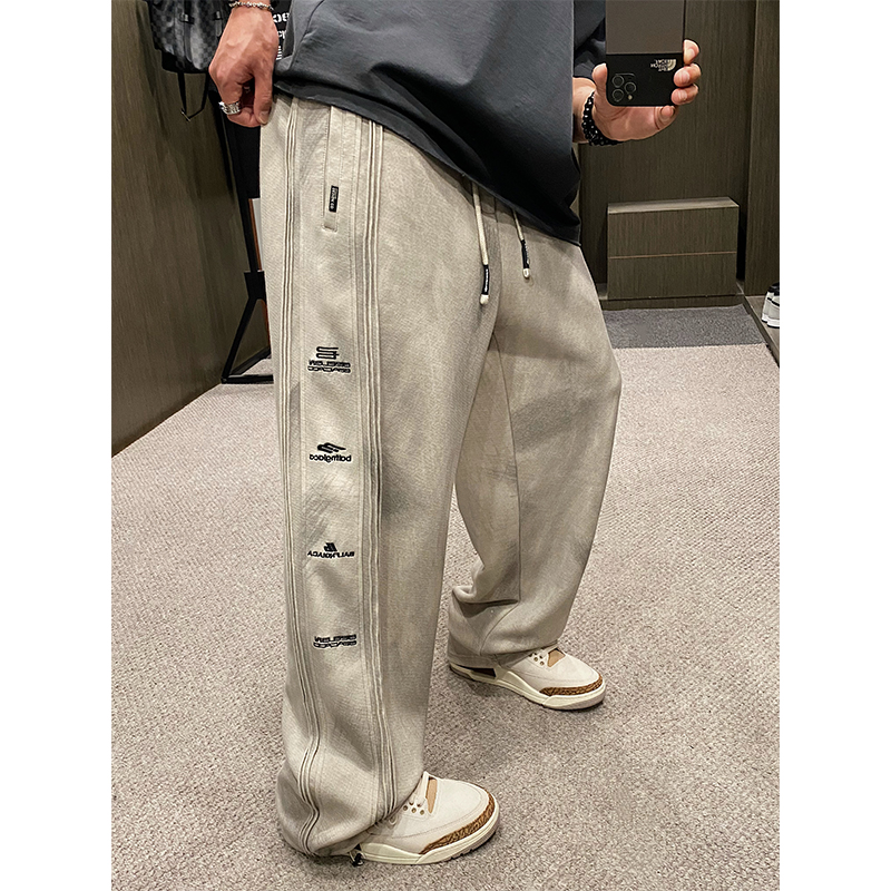 MXD UGLY春夏新款潮牌高定做旧水洗直筒休闲裤男松紧腰抽绳运动裤